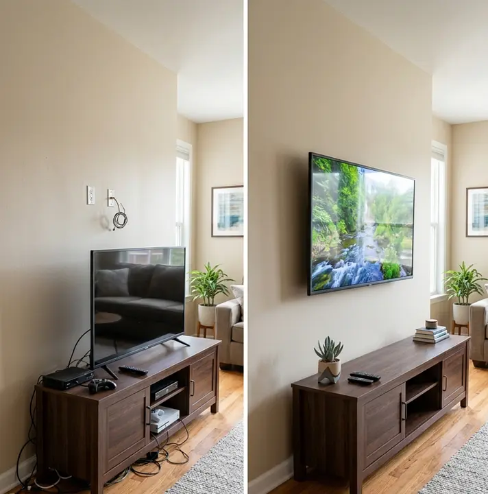 Professional TV mounting on any wall type with clean cable management — safe, secure, and done right the first time.